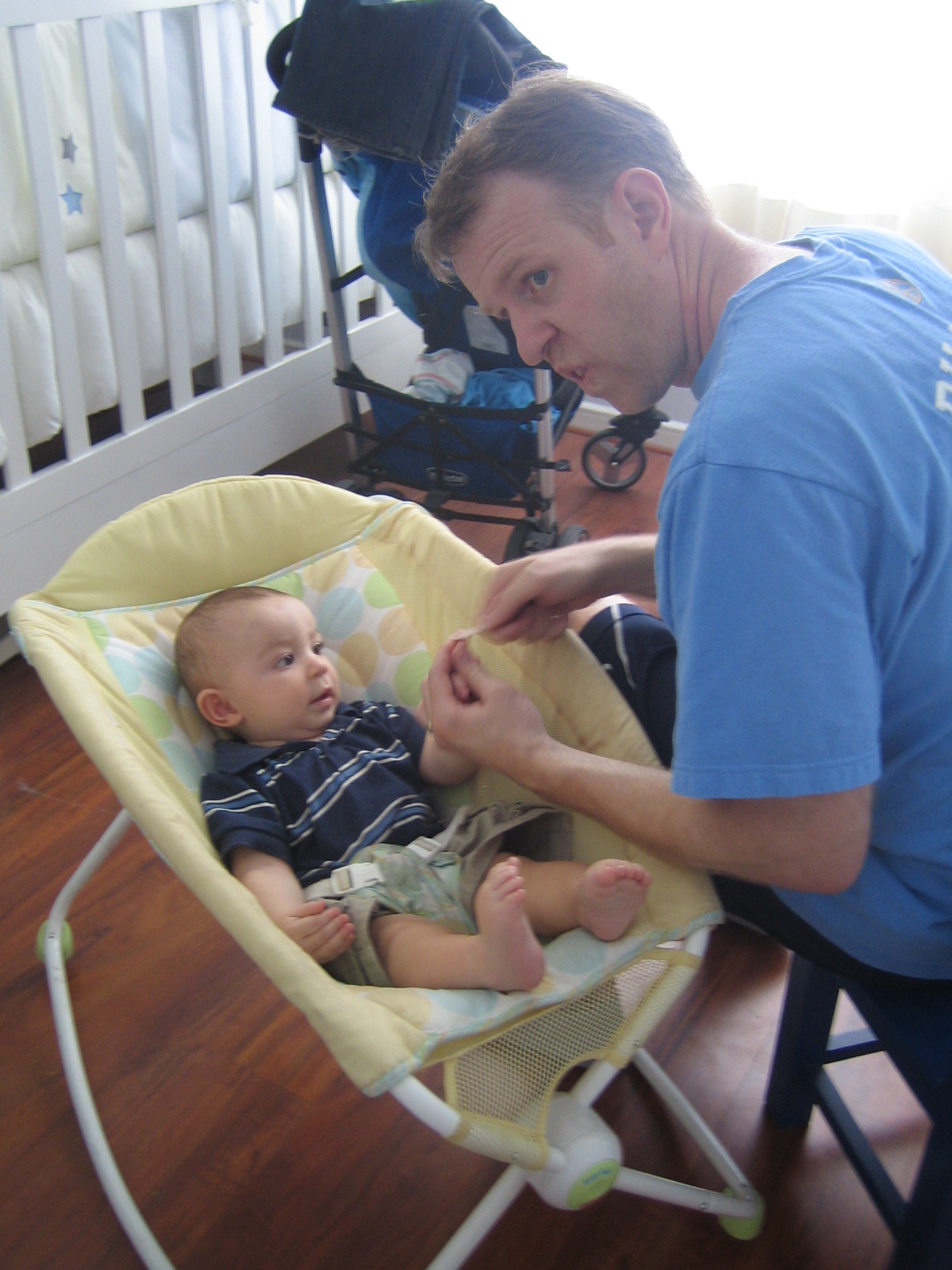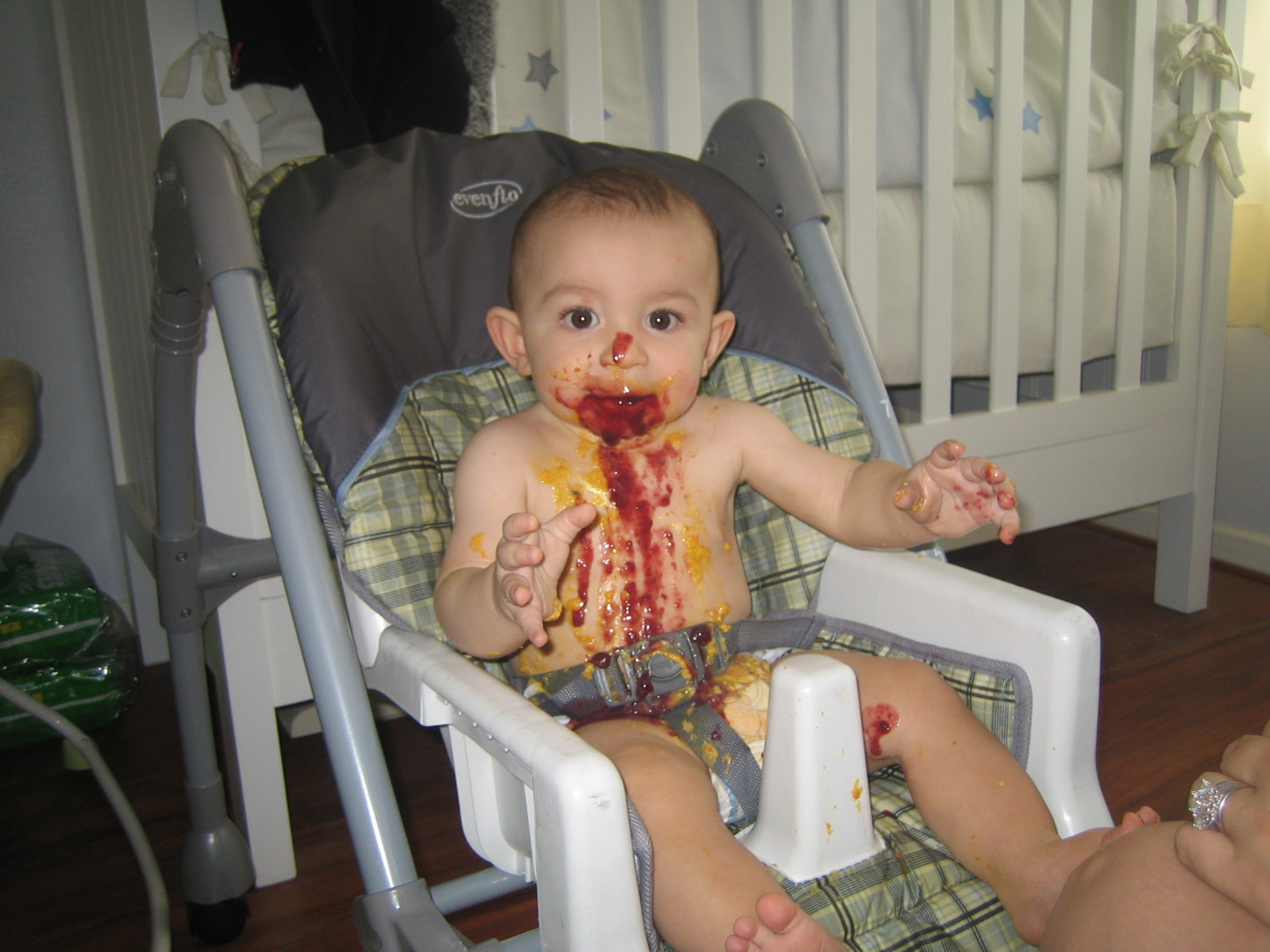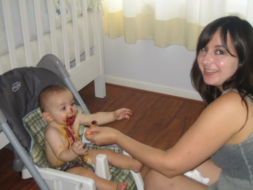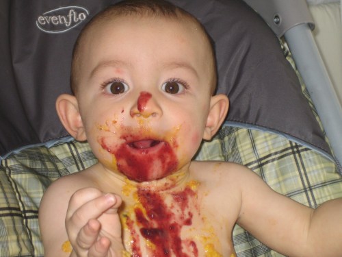 Couldn’t think of an adjective that rhymes with Michael and adequately paints the picture that is my daily reality feeding in my new high (low) chair …